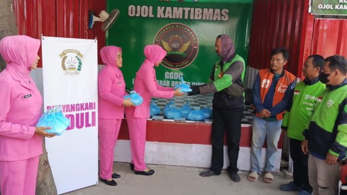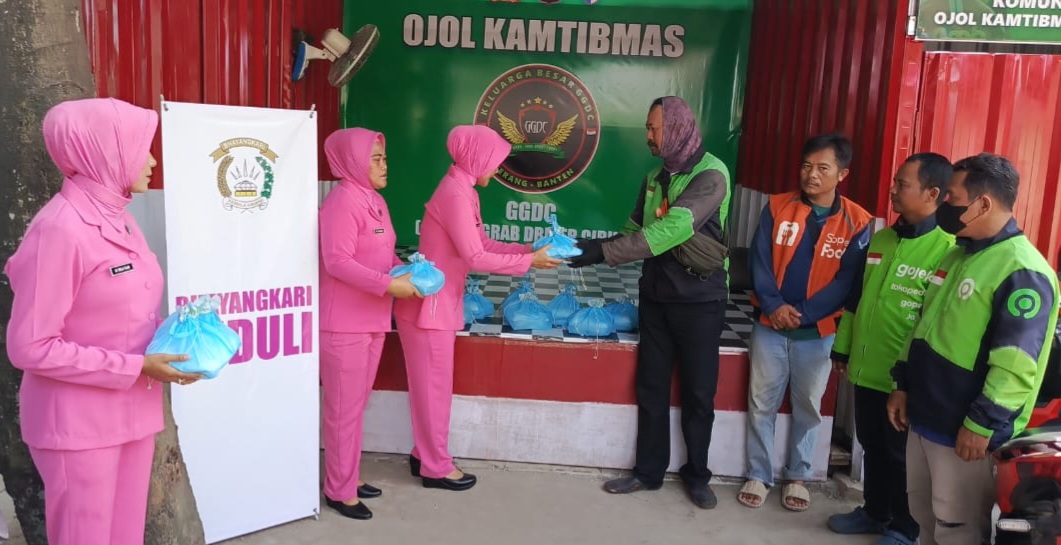 Dalam rangka menindaklanjuti program rutin Pengurus Cabang Bhayangkari Serang, Pengurus Ranting Bhayangkari Ciruas menggelar kegiatan bakti sosial dengan membagikan paket makan siang kepada pengojek ojol dan pengguna jalan, Jumat (31/10/2025).