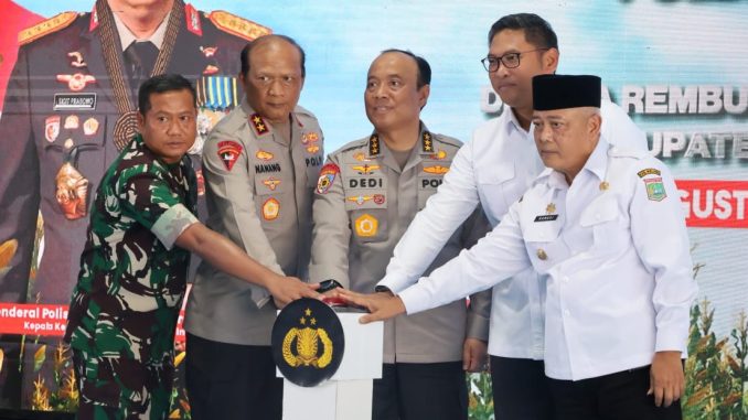 Polri hari ini melakukan lompatan strategis dalam program Makanan Bergizi Gratis (MBG) dengan meresmikan 8 SPPG operasional sekaligus melaksanakan groundbreaking 205 unit baru secara serentak di seluruh Indonesia. Pusat kegiatan dipusatkan di Desa Rembun, Malang, dihadiri Wakil Menteri Pertanian, Irwasum, jajaran Forkompimda, dan masyarakat. Momentum ini diperkuat dengan panen jagung nasional disaksikan 34 Polda serta penyerahan bantuan Alsintan peralatan pertanian berupa traktor, benih,pupuk dan pestisida untuk mendukung pasokan bahan pangan lokal untuk dapur SPPG yang beroperasi. Rabu(06/-08-2025).