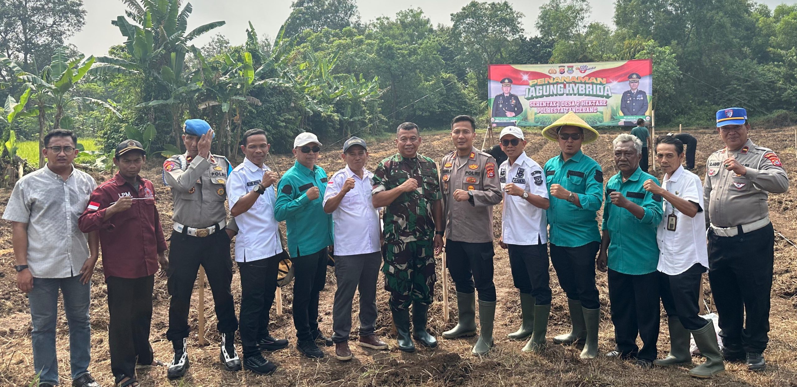 Polsek Pasar Kemis bersama forkopimcam pasar kemis menggelar program penanaman jagung hybrida sebagai bagian dari upaya memperkuat ketahanan pangan nasional. Kegiatan ini berlangsung di lahan non-LBS (lahan baku sawah) yang terletak di kampung waru Desa Sukaharja Kecamatan Sindang Jaya Kabupaten Tangerang pada rabu (06/08).
