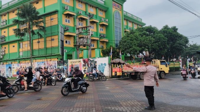 IPTU Purwantoro selaku Kanit patroli bersama piket pungsi polsek panongan melakukan pengaturan lalu lintas untuk membantu kelancaran kendaraan yang lalu lalang untuk beraktifitas.