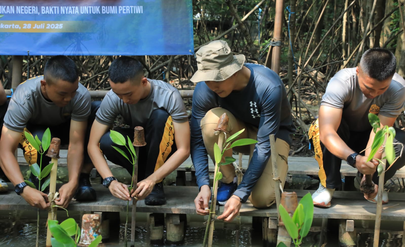 Sebanyak sepuluh Taruna Akademi Kepolisian (Akpol) menggelar kegiatan penanaman 100 pohon bakau di Taman Wisata Alam Angke, Jakarta Utara, sebagai bentuk nyata kepedulian terhadap lingkungan hidup.