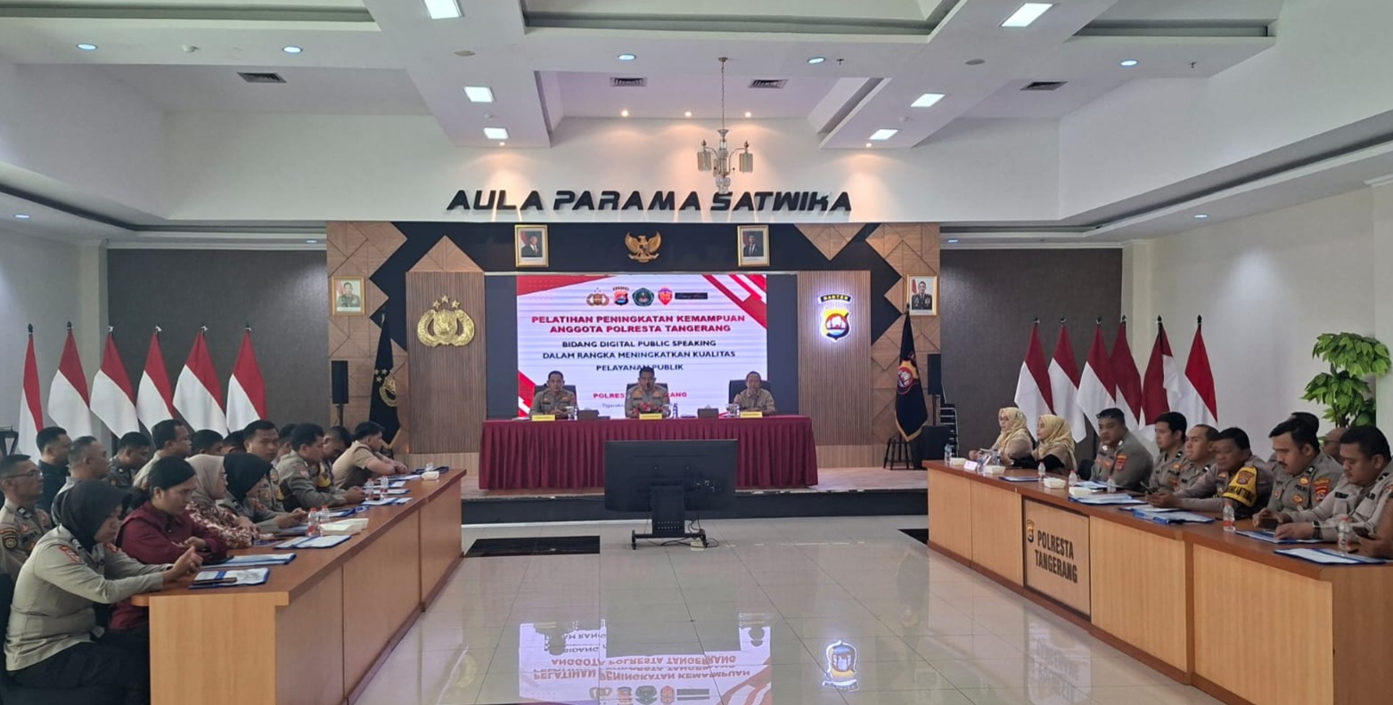“Pelatihan peningkatan kemampuan bidang digital Public Speaking ini dilaksanakan untuk meningkatkan kualitas pelayanan publik di Polresta Tangerang,” kata Kapolresta Tangerang Kombes Pol Andi Muhammad Indra Waspada Amirullah.
